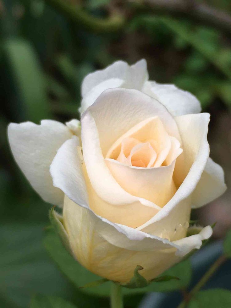 中心はクリームピンク、周りをソフトベージュの花弁が覆うカップ咲き、ダマスク系強香 芳しい薫りとその花姿の美しさから名付けられた