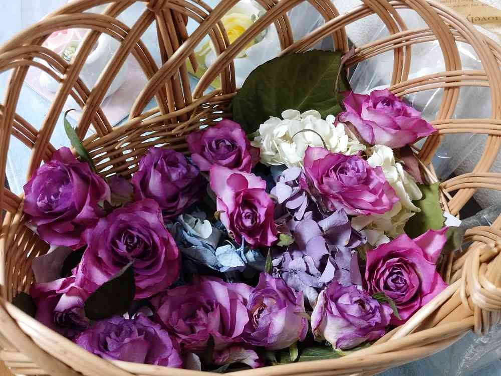 かご🧺にドライフラワーを入れて遊んでみました❣️