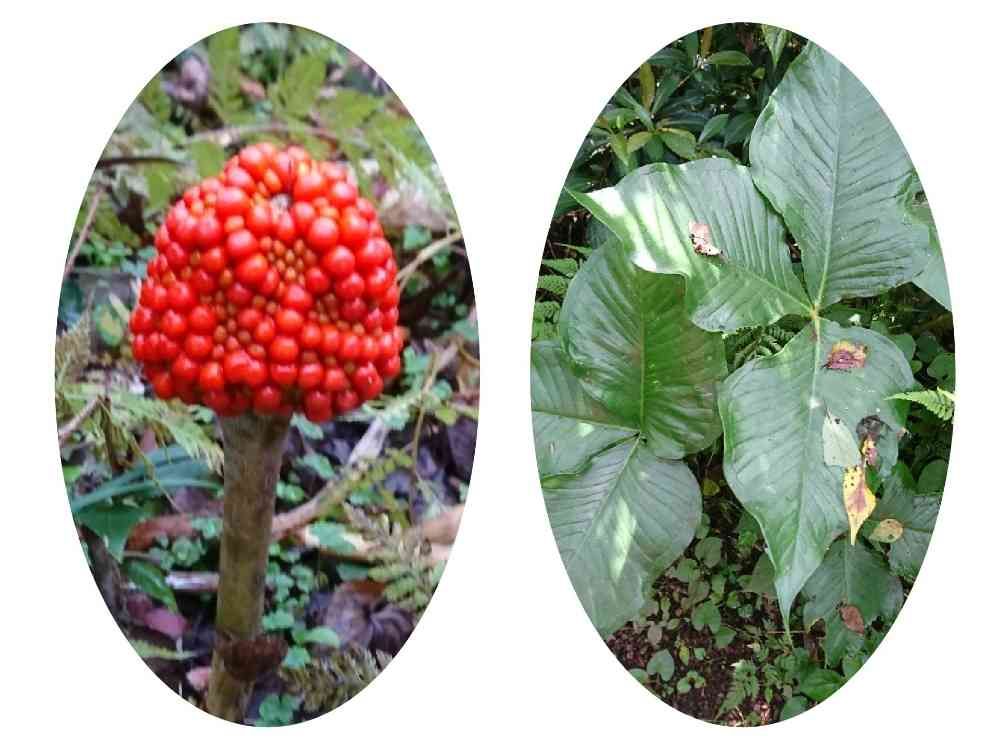 「マムシグサ」の葉とは全く違い、「ムサシアブミ」の葉は1枚が30㎝と大きく3枚仕立てです。