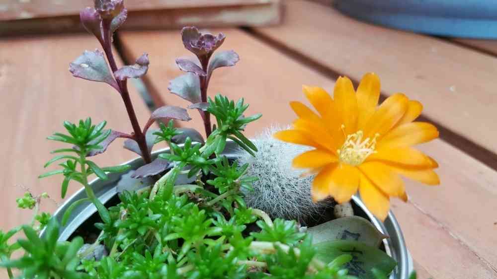 直径 約1.5cmくらいの小さなサボテン(名前忘れました😅)から、始めて咲きました😂