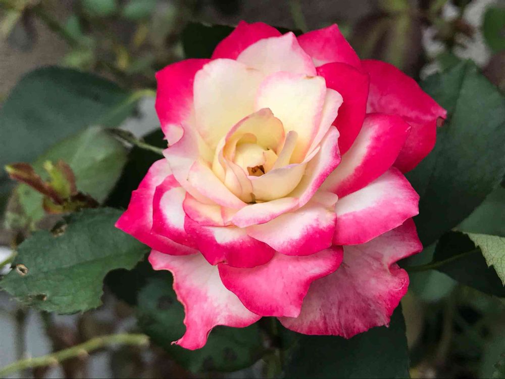 長い梅雨の間、葉っぱが落ちたり虫に狙われたり、それでもなんとか一輪、頑張って咲きました🌹