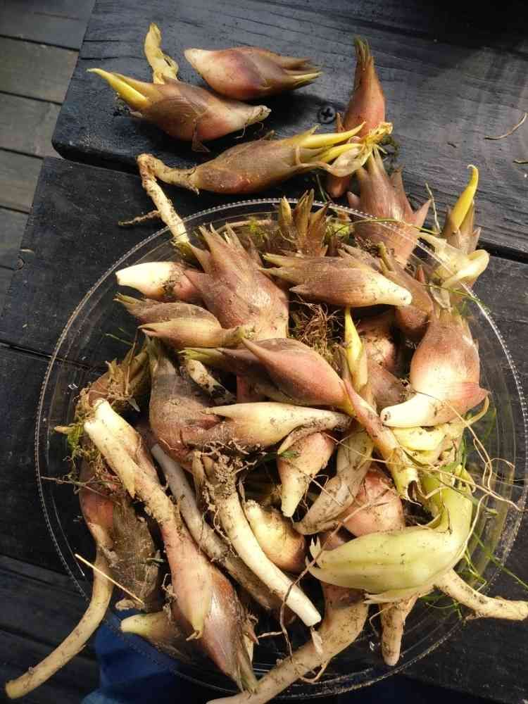 高知はミョウガをハウスで作っていて、市場に出回るミョウガの外側や茎が、格安で売ってるから、それをよく洗ってらっきょの酢で漬けます。