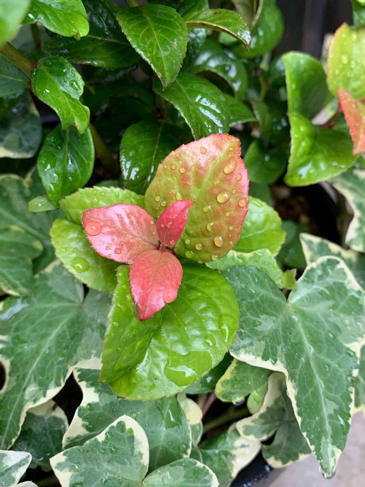 西洋南天(セイヨウイワナンテン)の新芽が赤く可愛い〜😚✨
