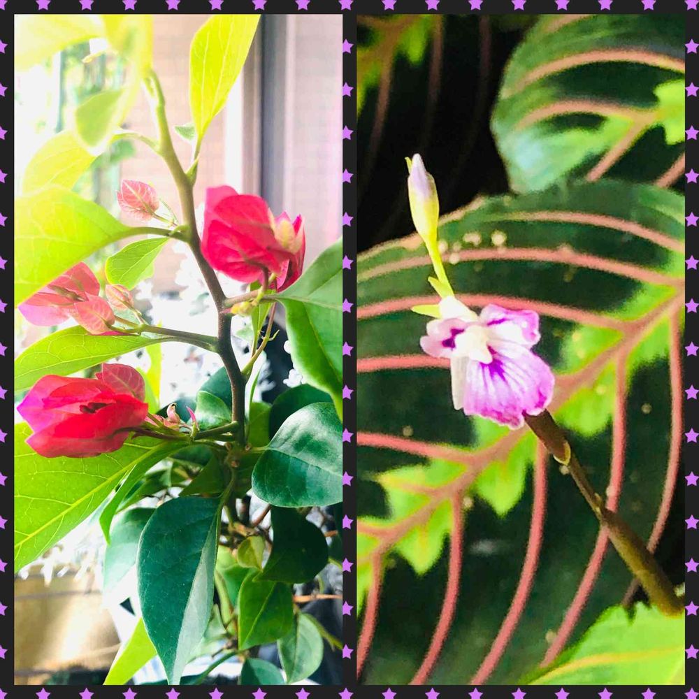 ブーゲンビリアは来た時にあったピンクの部分がゴッソリ落ちて「あー80円だとこれで終わりか」と思ってたっけ、新芽が出てピンクになってきたよ(❁´ω`❁)
