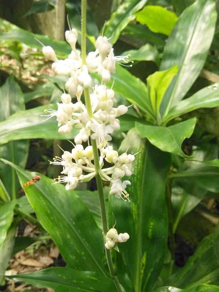 やぶみょうが、やっと咲き始めました。群生しているけど、ひとつの花も可愛い。