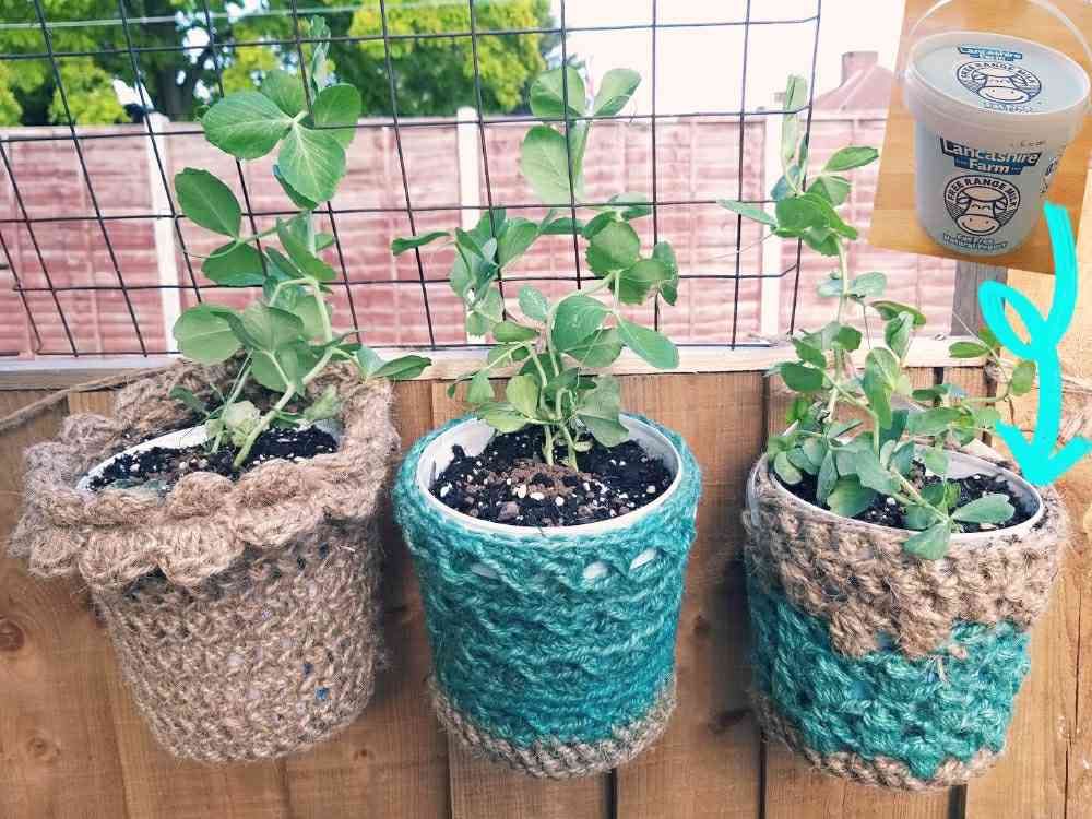 ちなみに、コウリスを移したのでミルクボトルのハンギングはスナップエンドウになりました〜