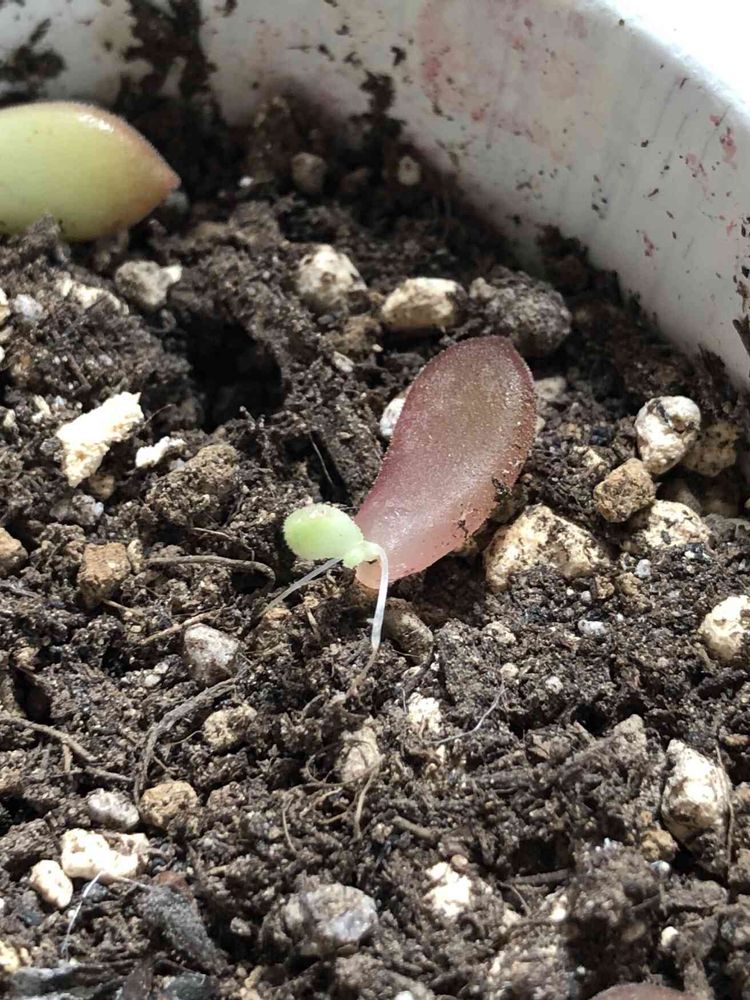 1ヶ月半くらい前に葉挿しをしたオレンジドリームの赤ちゃんが、少し大きくなりました。
