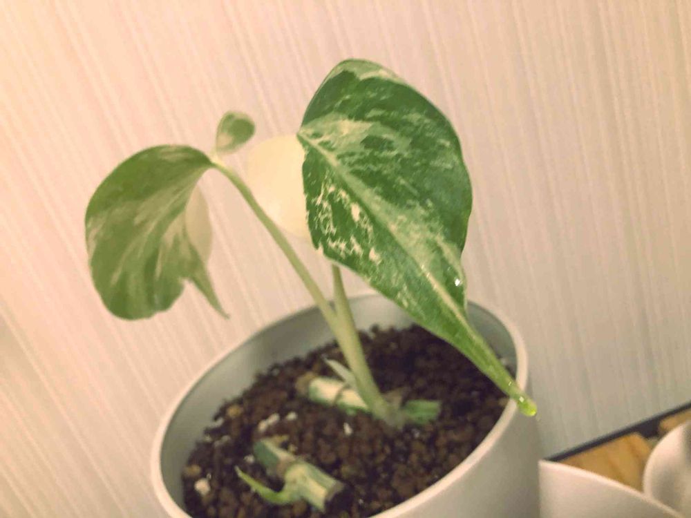 いろいろと試してくたりの試行錯誤なところがすっごく共感できます!今同じく斑入りモンステラの茎伏せ挑戦中ですが、発根はしてなく気根のみなんですがぷっくらと茎から新芽が出てきてて気になりました!