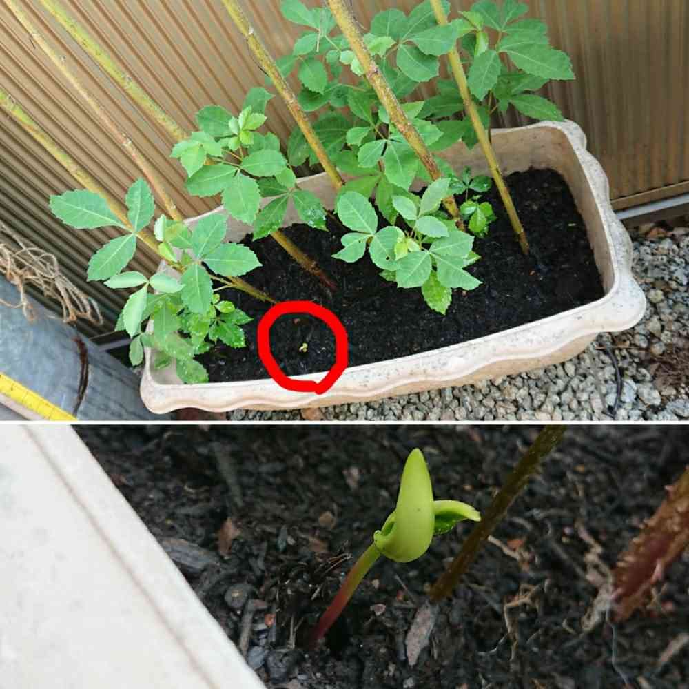 今日、プランターの中に何か発芽しているのを発見👀