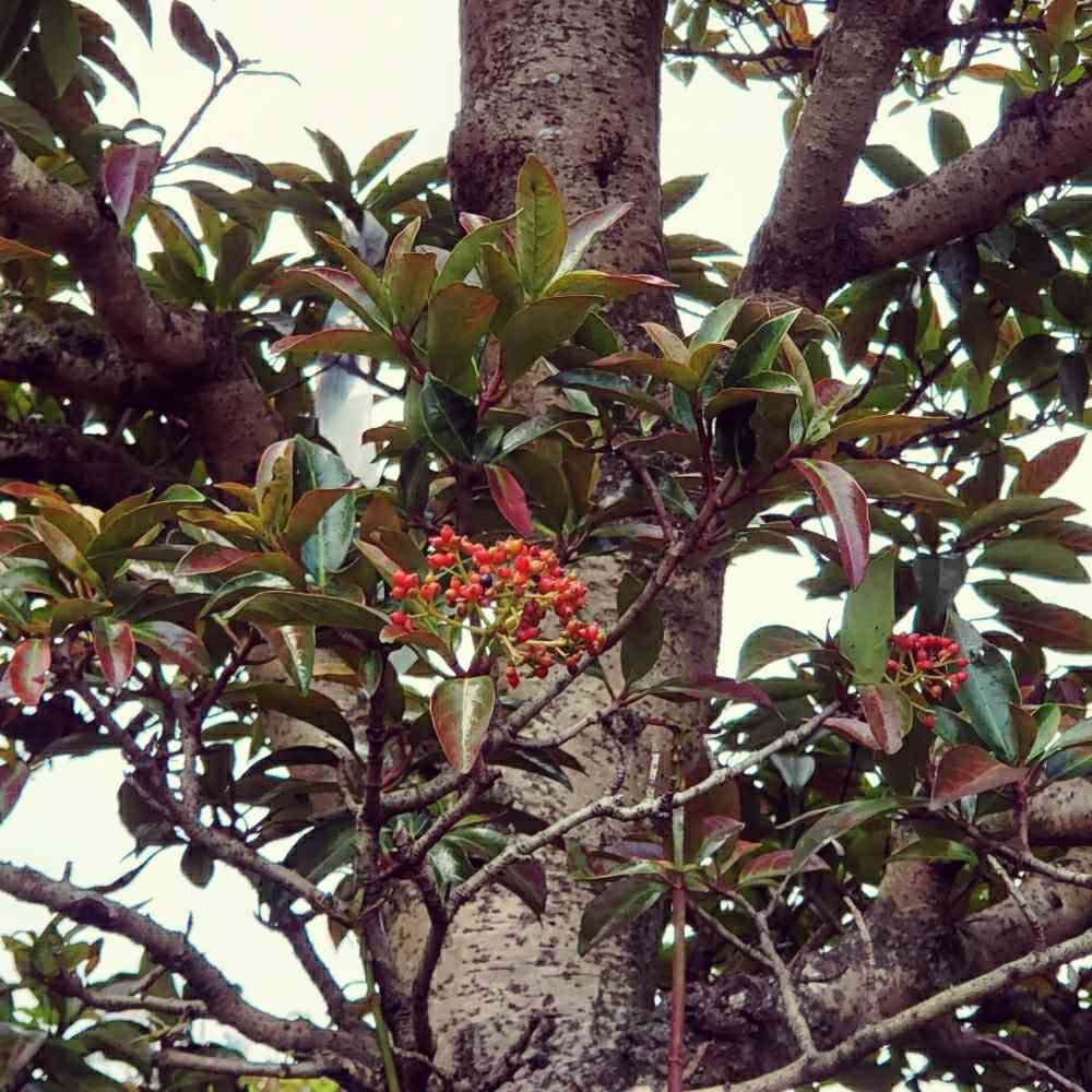 大きな木です幹の周りは70センチくらい。葉が赤くなりはじめています?赤い実も菜も見えています(^ ^)