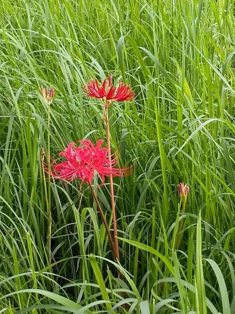夏草に負けじと咲くヒガンバナは、チャレンジャーですね☺️