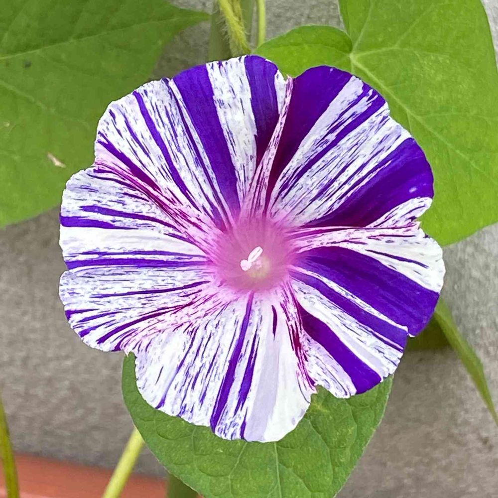 この朝顔一つの苗に白、紫、混合と何種類も咲いて楽しめるから好きなんです😊