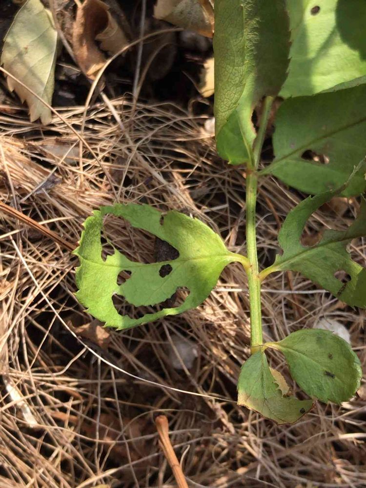 放置してチリチリになった薔薇の葉っぱをザクザク落としていて
