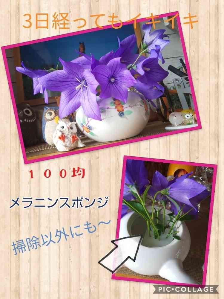 桔梗を切り戻した時、残っていた花を昭和の急須に生けたけど、オアシスがなく、100均のメラニンスポンジで代用…😅