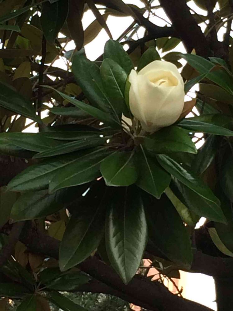 会社へ行く道の途中の木に見事な白い花が一輪だけ咲いていました。何という花でしょうか?わかる方いましたらよろしくお願いします。