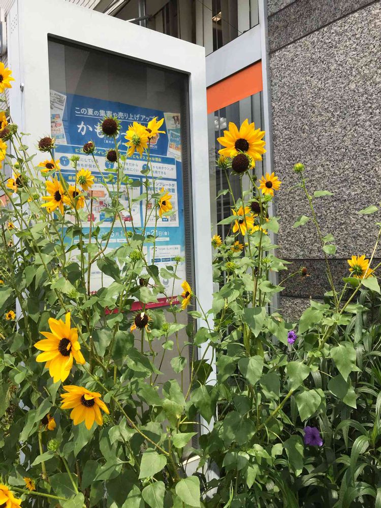途中、郵便局のヒマワリが綺麗だったので、思わず立ち止まってしまいました。