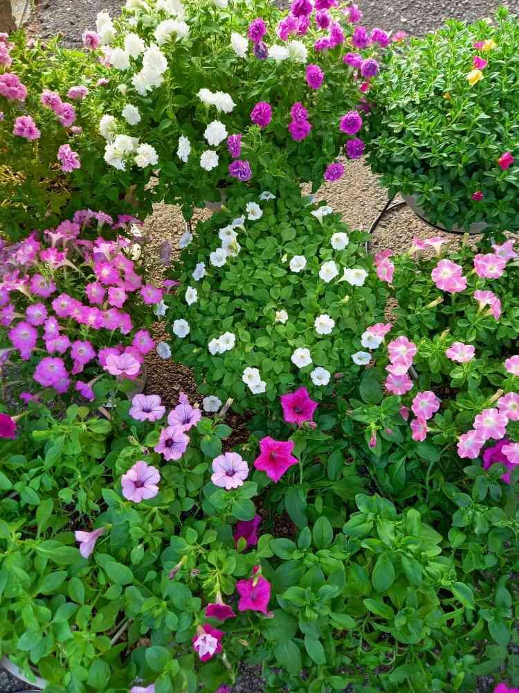 後方、真ん中の、サフィニア フリルは、梅雨中に咲きだして、ぜ➰んぜん、花が元気👏