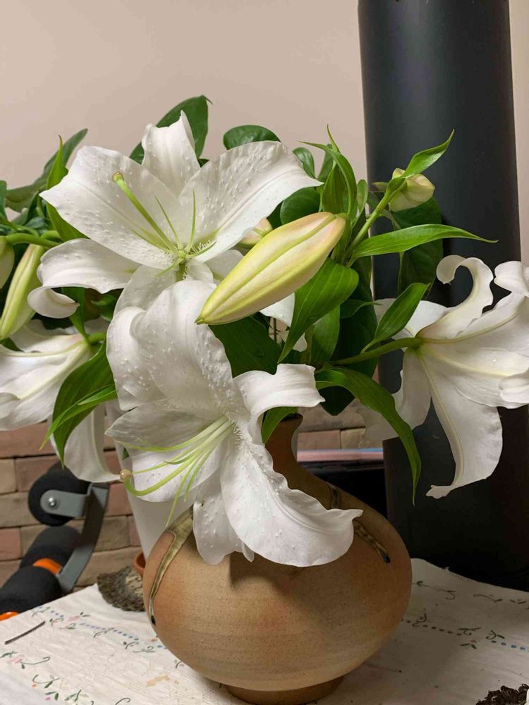 咲き始めたカサブランカを切り花にして花瓶にさしました❗️🌸☺️