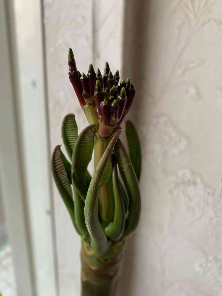 バッグルーティング中 葉が展開する前に花芽が成長してきたみたい🤣