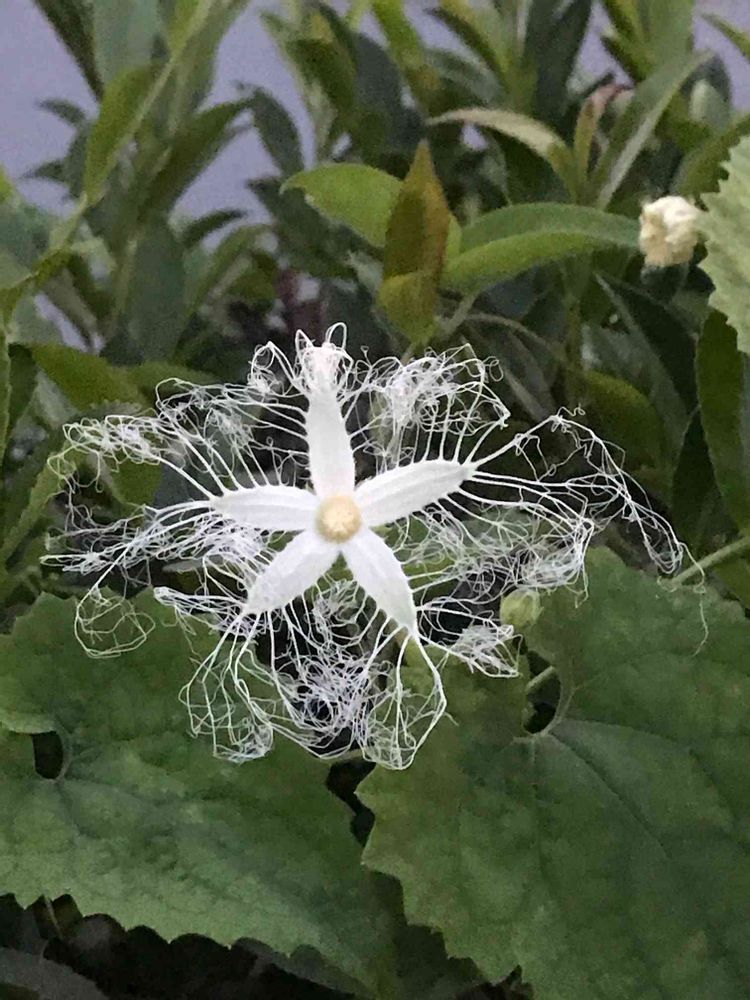 カラスウリ💕不思議な花です。日暮れからしか咲かないことや、この花びらにした理由は何なんでしょうね?
