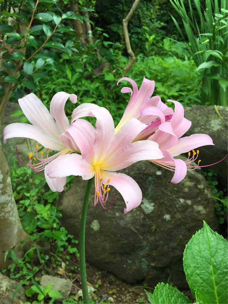 突然、彼岸花に似た🌸が咲き出しました❗️ビックリするやら嬉しいやら毎日一つづつ開く花を楽しく観察しています😊