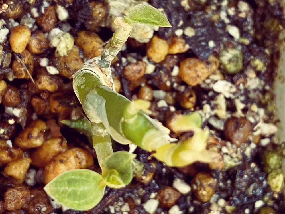 ダメにしてしまったジュエルオーキッドから新しい葉っぱが出てきました