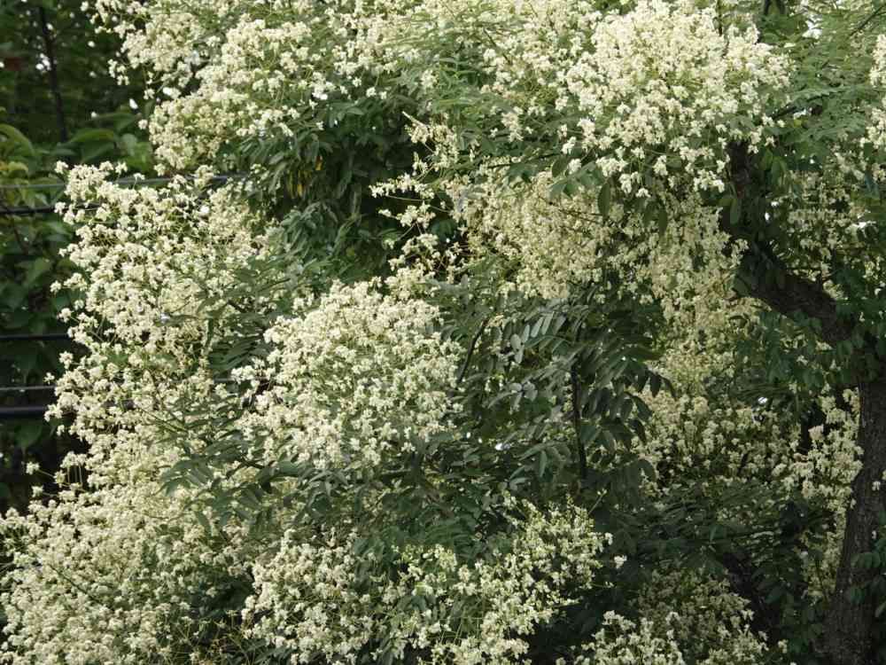 街路樹のエンジュが満開