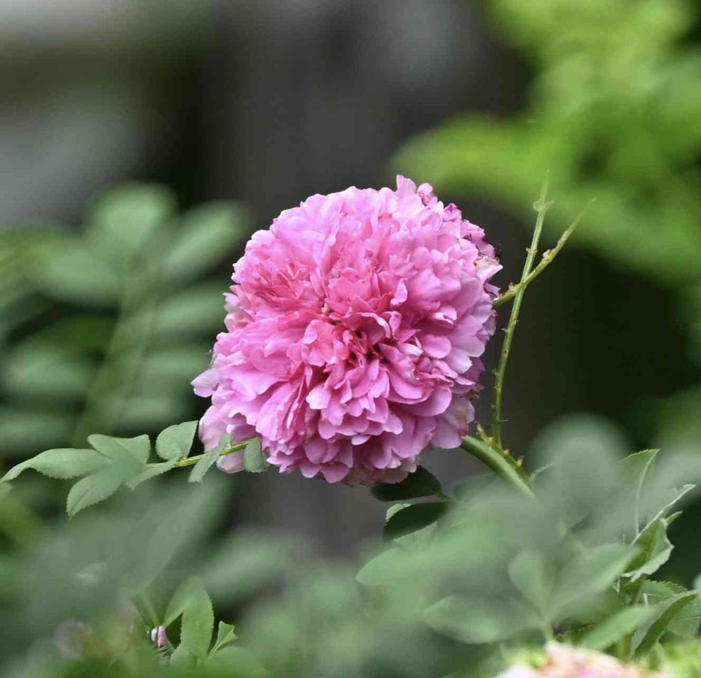 多くの花びらでモリモリの薔薇。一方が欠けているから、十六夜の名がついたとか…この角度だと、まん丸ですね😉💕