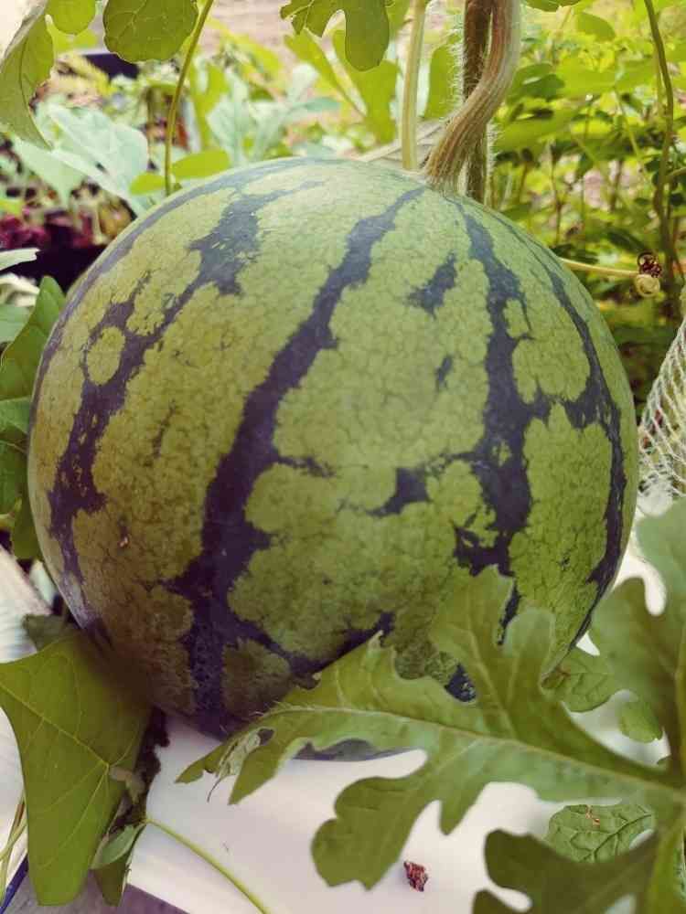 小玉スイカです。あと直径4、5cm育つと収穫出来そうです。