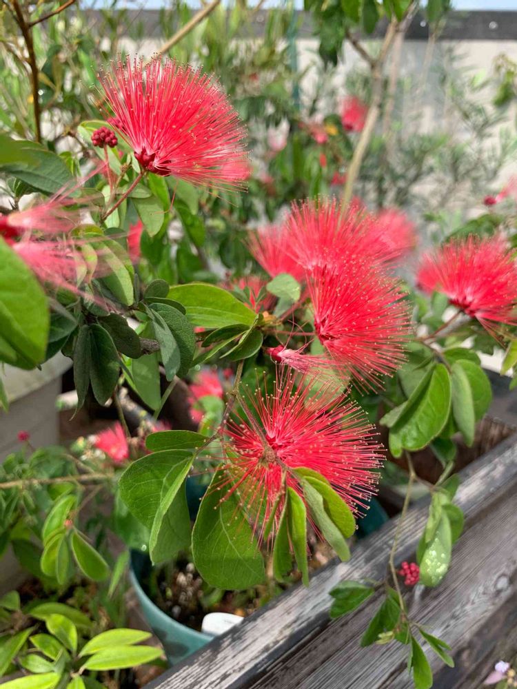 四季咲きの赤花ネムさん、小さい苗をお迎えしましたが、、