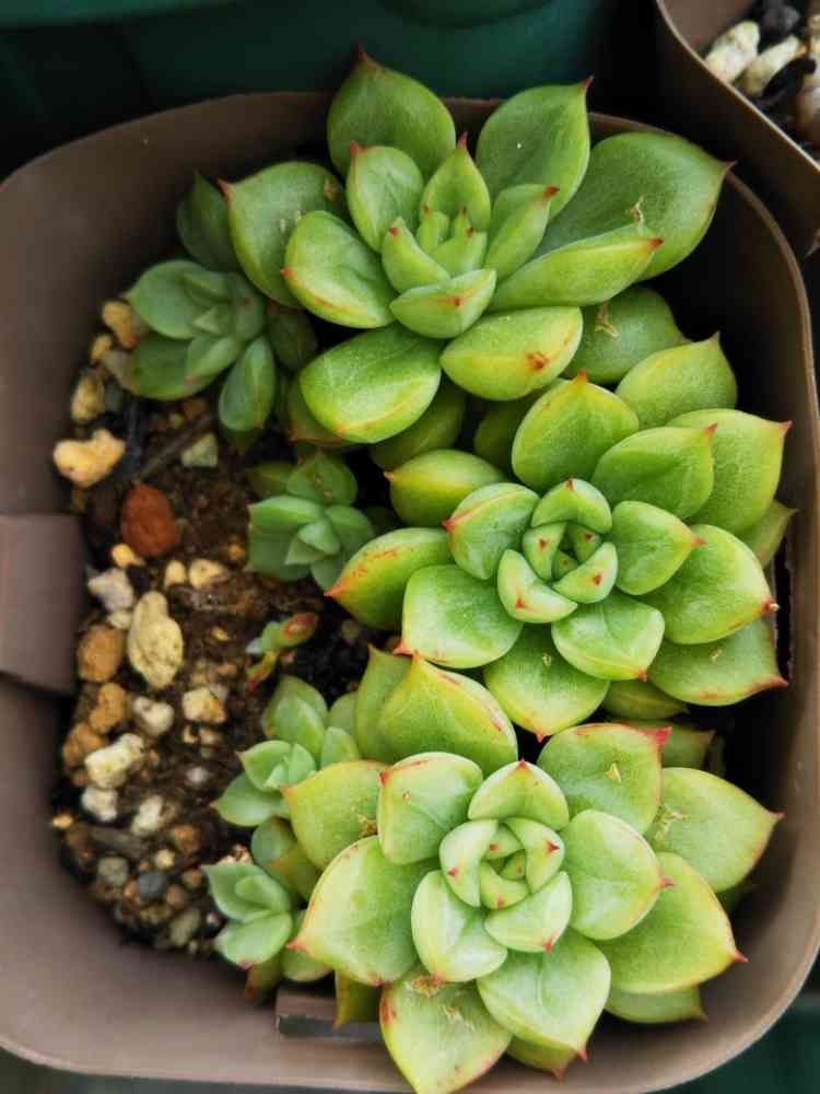 綴化したエケベリア・女雛さんの分解株ちゃん達の一部。