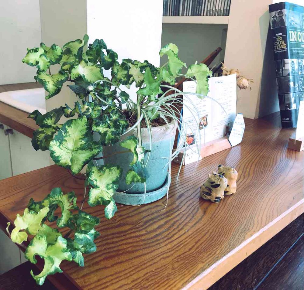 ヘデラとカレックスのシンプル寄せ。観葉植物がわりに、カフェの中に飾ってもらってました。いい感じに馴染んでて良かった。