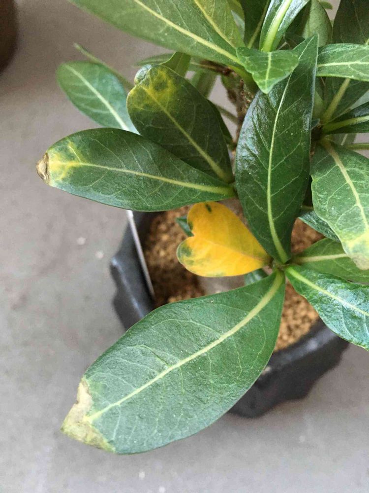 ベランダに出して約10日、アデニウムの葉が変色していってます😭