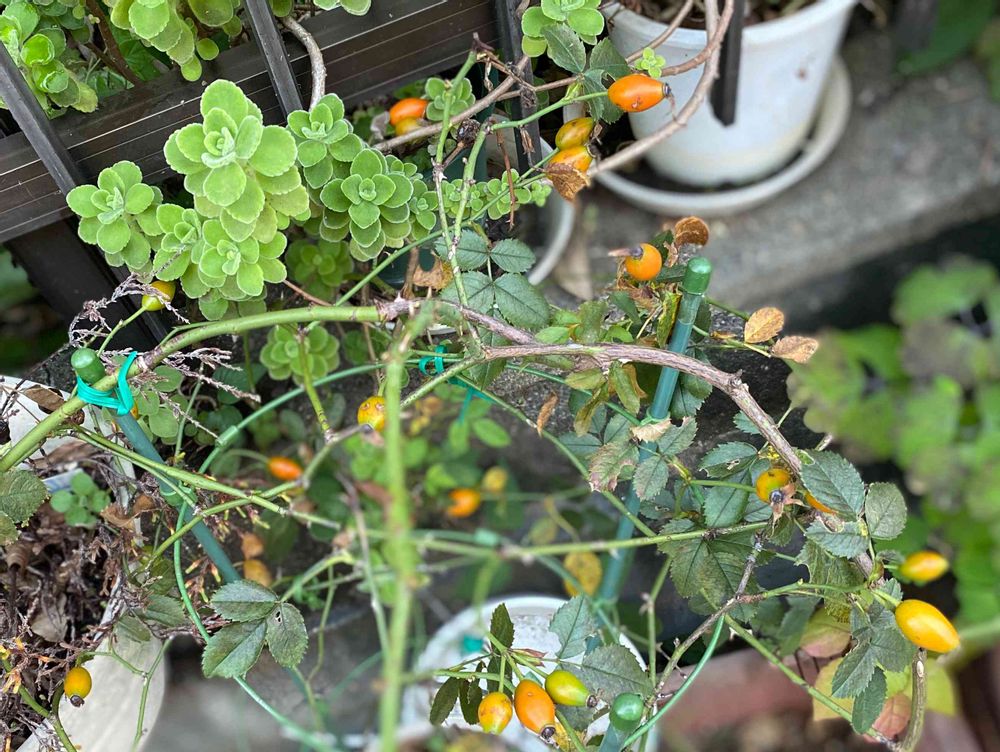 たくさん成ったドッグローズの実(ローズヒップ?)が色づいてきました
