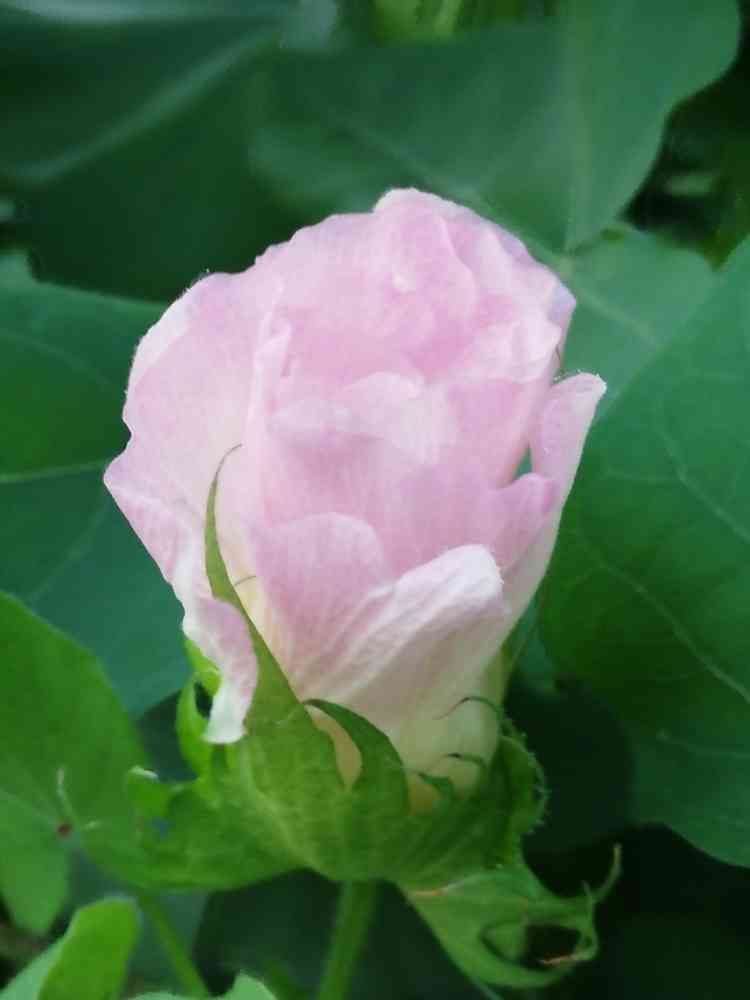 棉の花で、白と濃いピンクも咲くそうですが残念ながら開いた所を見た事はありません