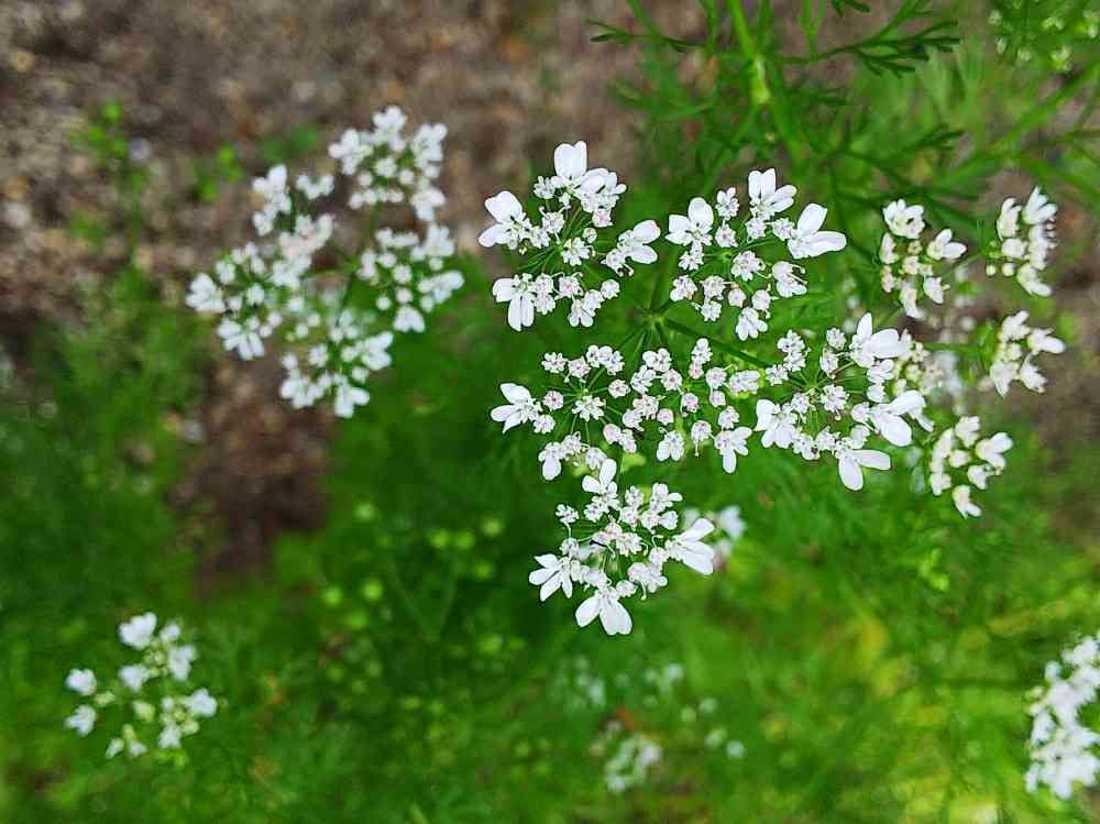 パクチー,白色の花。,緑地帯の花壇。の投稿画像