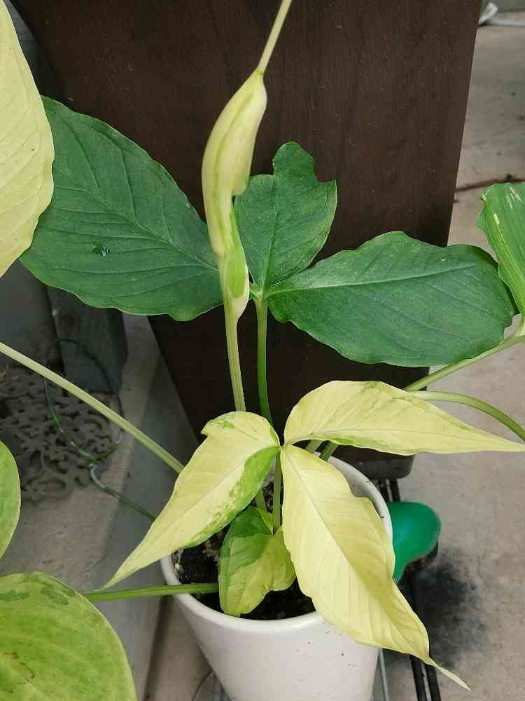 5枚目の葉は手前三枚葉はほぼ斑に緑のぶち。