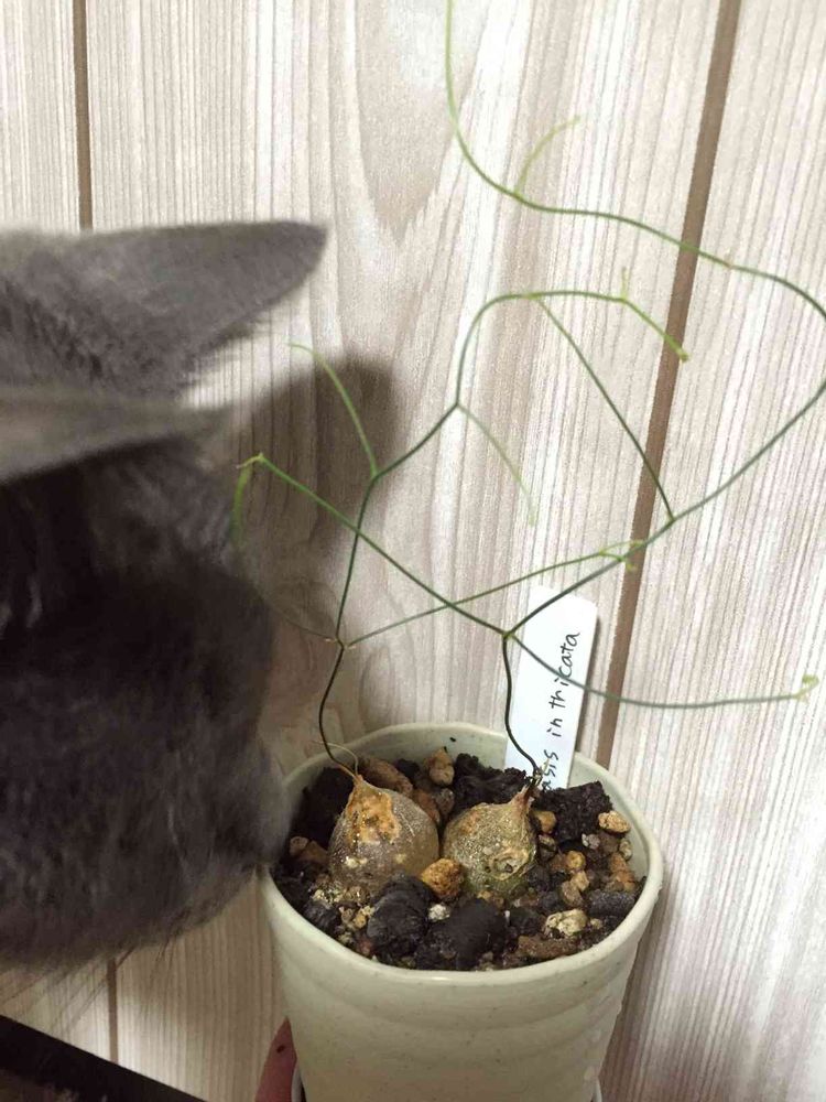 イントリカータ親株、にゃんこの餌食になり一時的瀕死でしたが、新しく葉も出してくれました( ´ ▽ ` )ノ歯型は消えませんが(爆笑)また狙ってますがヽ(´o`;