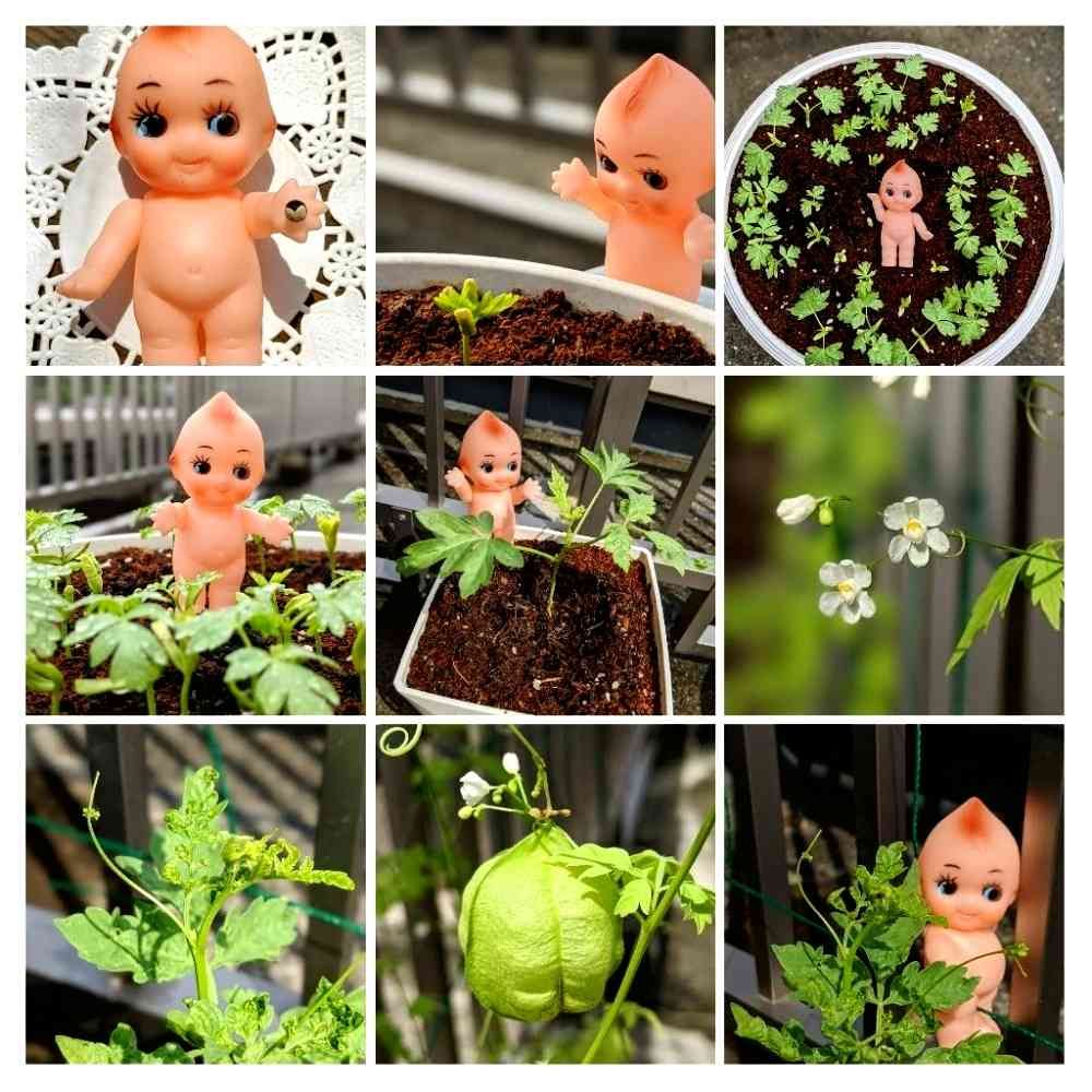💚エンジェルキューピー君の手のひらに乗せた昨年の種から始まります🌱