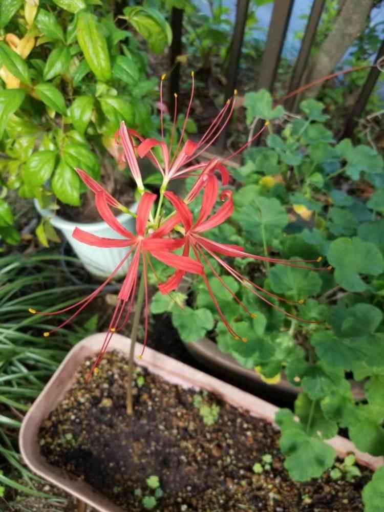 フライングしていた彼岸花さんが咲いてしまいました❗仲間たちはまだ土の中だというのに…。🌼