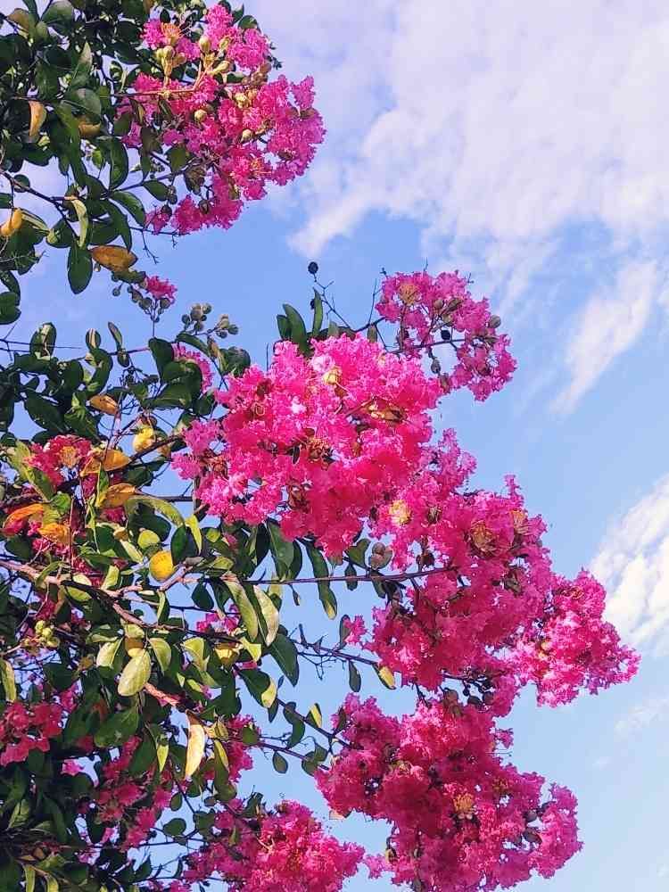 背の高いサルスベリと青空。見上げた角度、ナイス👍