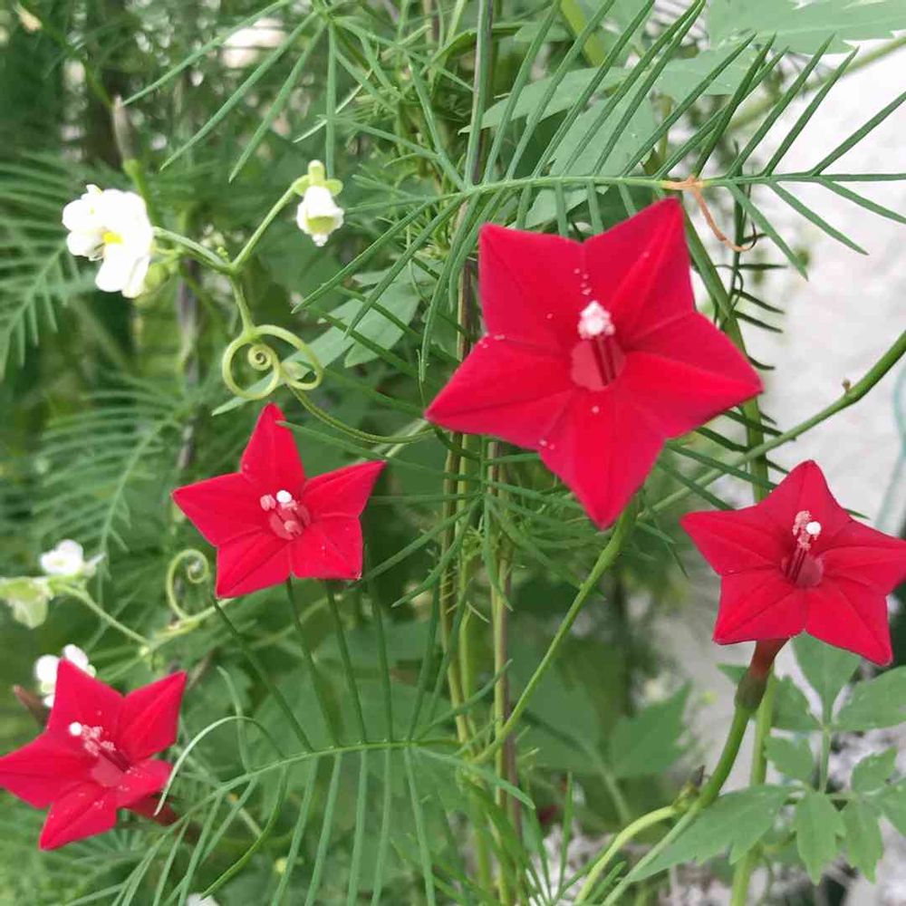 ルコウソウ、元気に蔓をのばして小さなお星様がよく咲きます😊