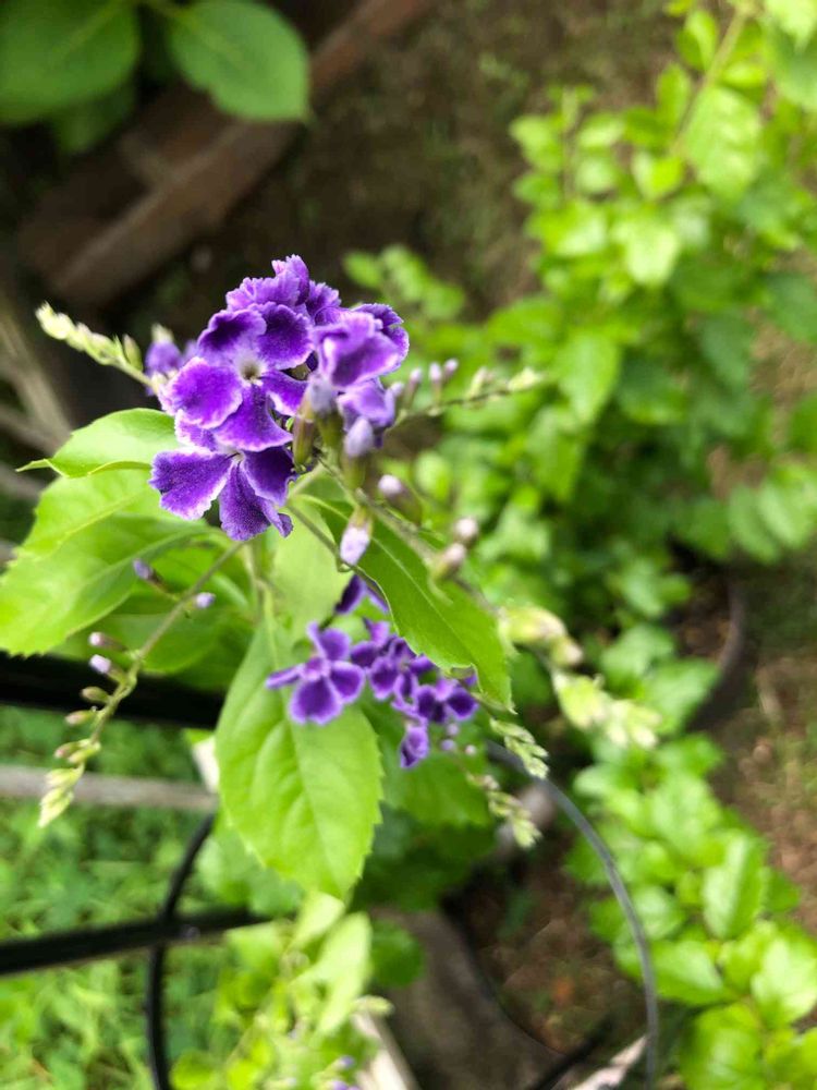 うれしい方…葉っぱばっかりで咲かないと思ってたデュランタタカラヅカが初めて花を咲かせてくれました🌸