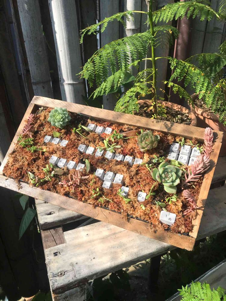 もらったワープロのキーボード部分で葉挿しベッドを作りました。