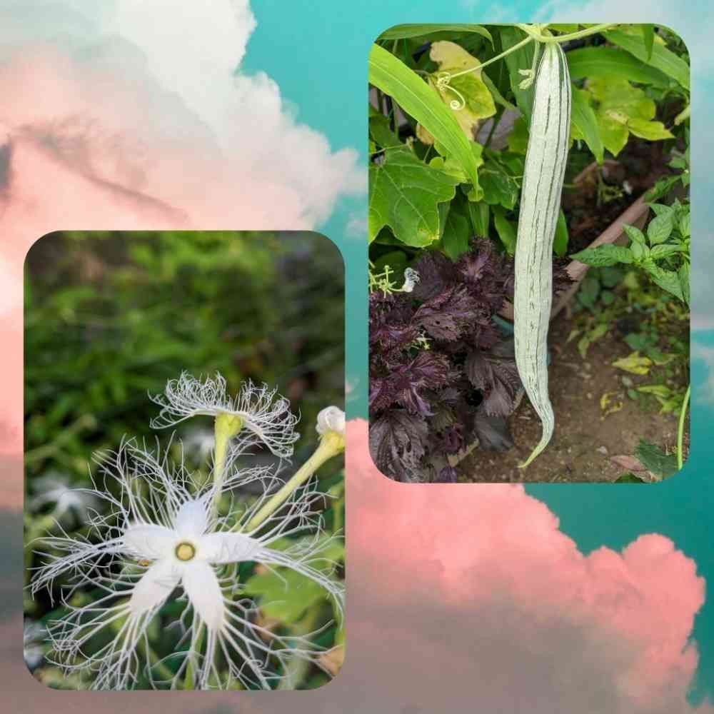 🐍ウリ初めて見ました。お花もカラスウリにそっくりですね。シッポもあって長くて、まさに名前通りです。ナス🍆の長いのは見たことありますが。あとはインゲンもね。