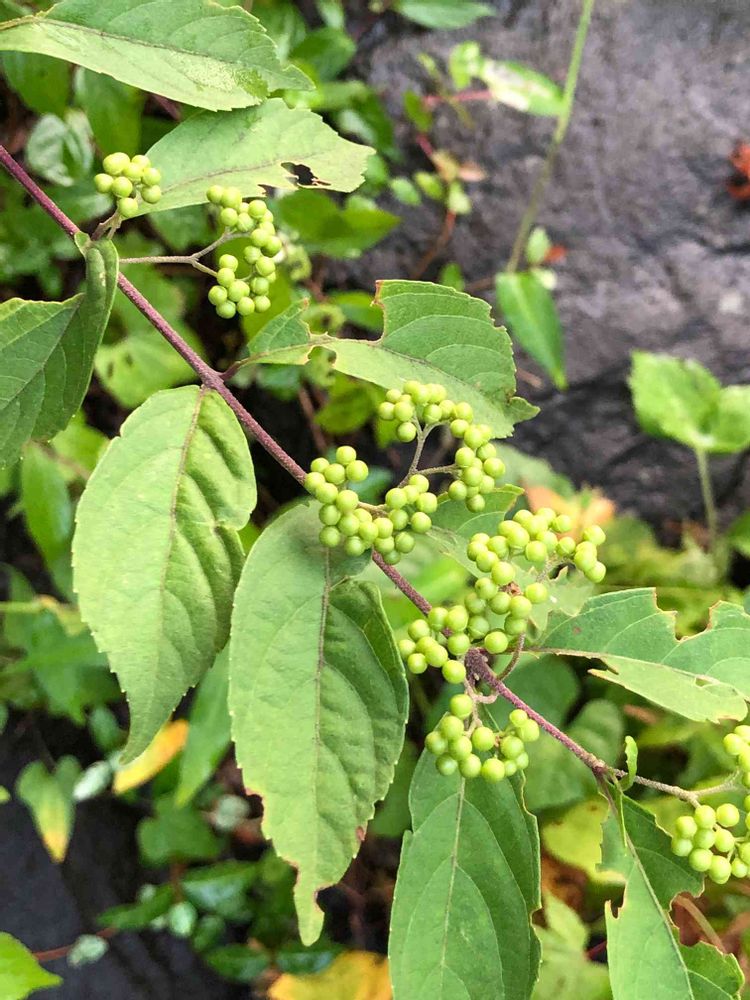 実は、ムラサキシキブの色は好きですが、その玉が飛び散って、あちこち発芽する。