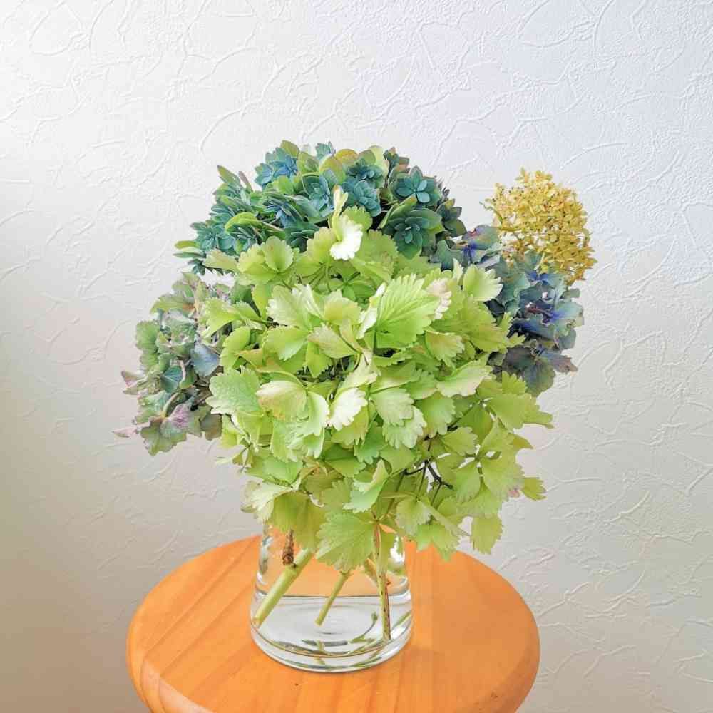 まず、剪定した秋色紫陽花を飾って楽しむ🎵