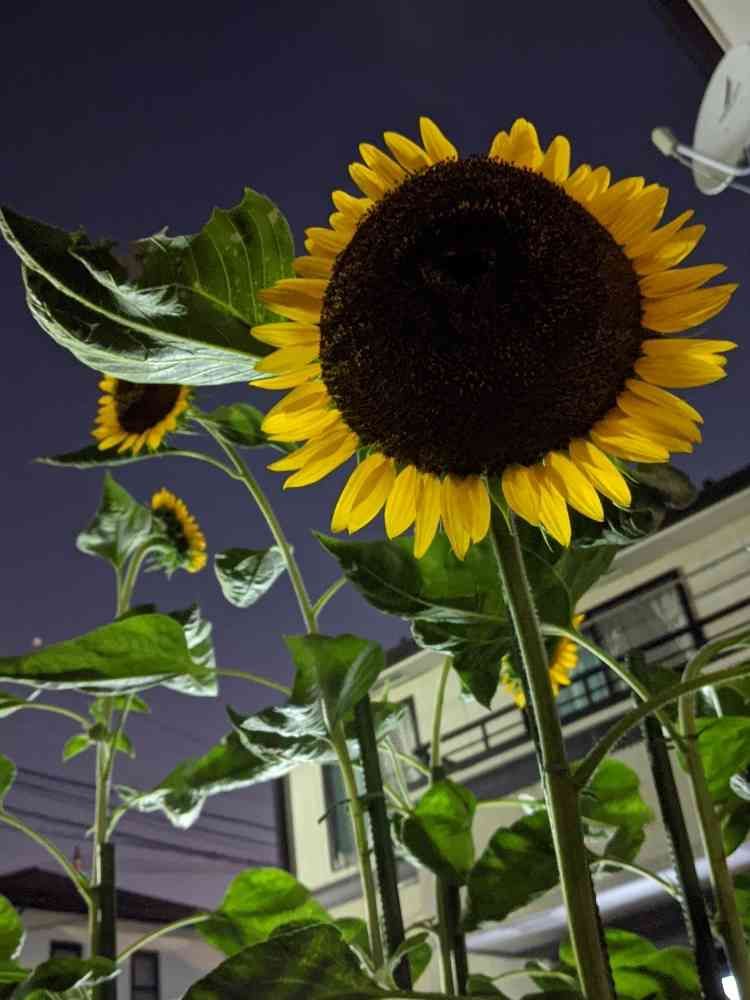 まだまだ首が折れてこないですね。ウチの近所の🌻さんたち、とってもかわいそうなありさまになってるコもいますよ💦