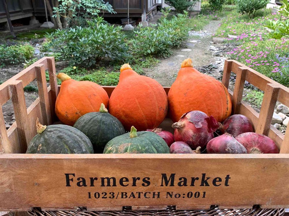 オシャレな木箱に入れるだけで、普通の🎃野菜も格上げされますね。