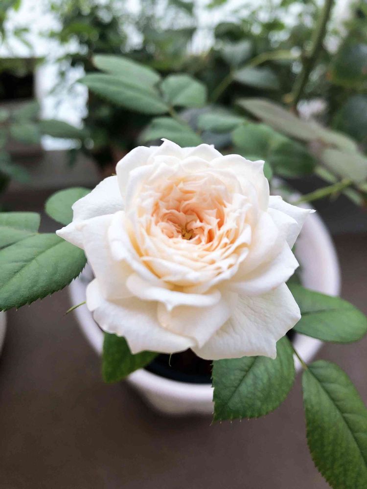 クラリスさん久しぶりに開花してくれました。中心に杏色がのって優しい雰囲気がお気に入り。私のファーストローズです。全く病気にもならず(薬害が出やすい。特にベニカを散布するとすぐ茶色くなる)生育旺盛です。